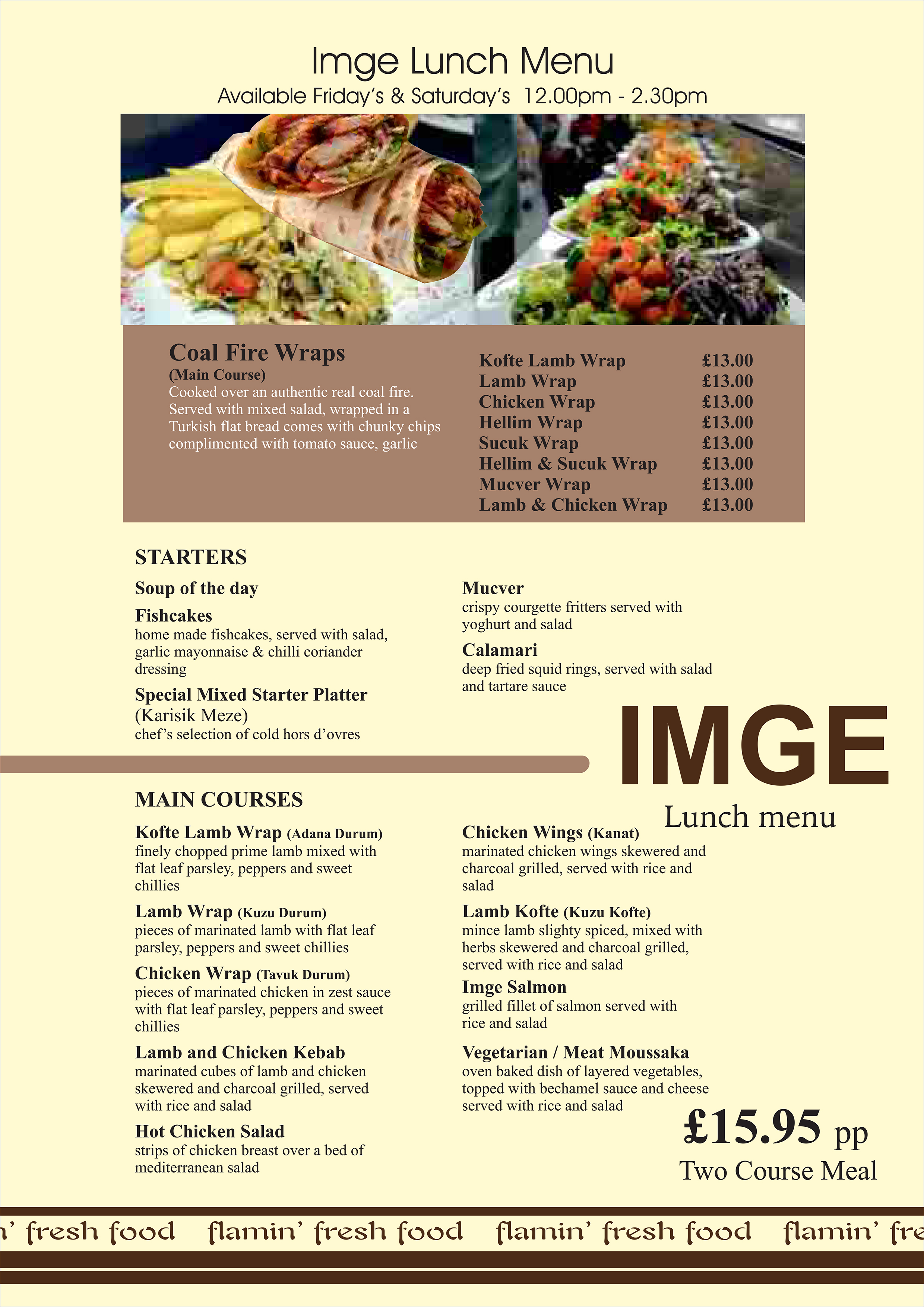 Offering a range of our most popular dishes, two-courses, starter & main, is priced at £15.95 per person.